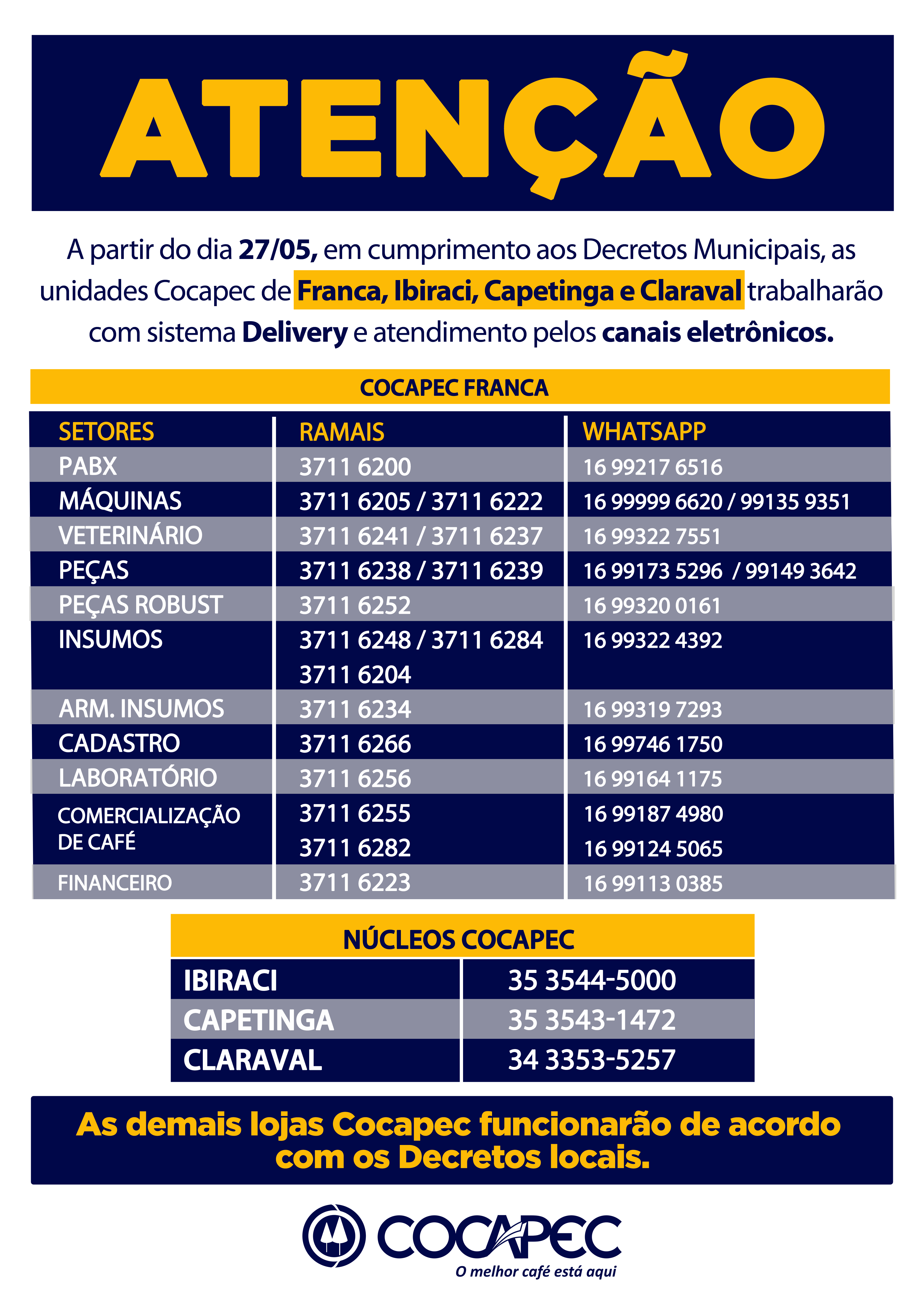 Funcionamento das Lojas Cocapec