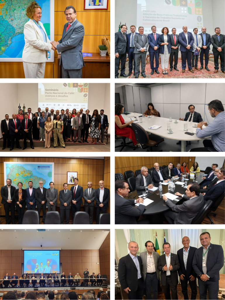 - 06/12/2024 – Seminário “Pacto Nacional do Café – Avanços e Desafios”, em Brasília, marca um ano do pacto e projeta sua terceira edição, com presença do ministro Luiz Marinho e lideranças do setor.