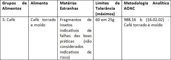 Veja, abaixo, como a RDC 14 – Norma da Anvisa trata atualmente o caso específico do café: