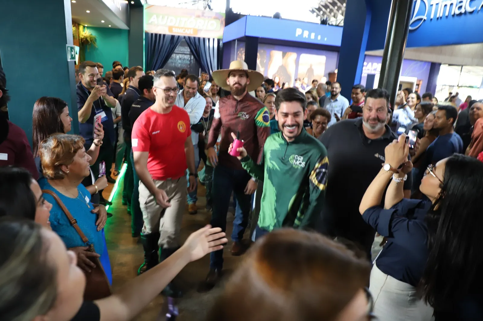 Um dos momentos mais marcantes do Simcafé foi a presença dos Primos Agro, fenômeno nas redes sociais. A dupla percorreu os corredores do evento, esbanjando simpatia e arrastando uma verdadeira multidão. O público enfrentou uma fila gigantesca para garantir uma foto com os rapazes, que atenderam todos no recinto. Previamente, tiveram um encontro especial com a diretoria da Cocapec, momento registrado e publicado no Instagram.